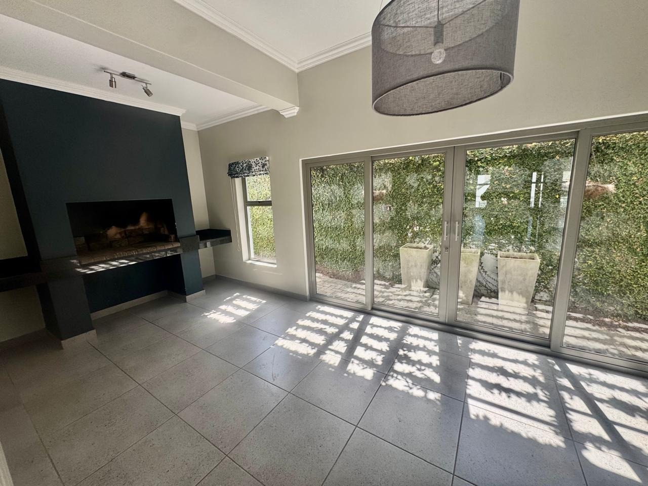 The indoor braai room is designed for year-round use and opens to the exterior through sliding doors, further enhancing the home’s natural flow and indoor-outdoor lifestyle.