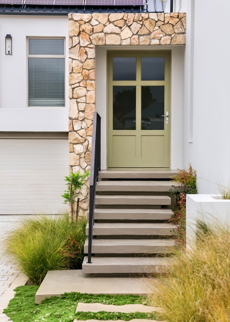 The main house offers two generous en-suite bedrooms (one featuring a full bathroom with both a bath and shower, and the other only a shower) — along with extensive built-in wardrobes with drawers, a separate linen cupboard and a dedicated guest toilet. The main kitchen is stylishly finished with Caesarstone countertops, ample cabinetry and under-counter space for a dishwasher. Included is a double-door fridge/freezer which is, together with the butler sink, fitted with a tri-osmosis water filter system. A separate scullery provides concealed space for a washing machine and tumble dryer and boasts a beautiful double butler sink. The living area impresses with a striking cathedral ceiling, wood-burning combustion fireplace and flows effortlessly onto a north-facing veranda with a gas braai. A built-in study nook with shelving and cupboards, positioned by a window that overlooks the garden, offers a peaceful workspace. Subtle wallpaper accents, air-conditioning in every space, high-quality laminate flooring, block-out and sheer curtains (some motorised), blinds, dimmer switches and carefully selected light fittings accentuate the home’s timeless charm and comfort.