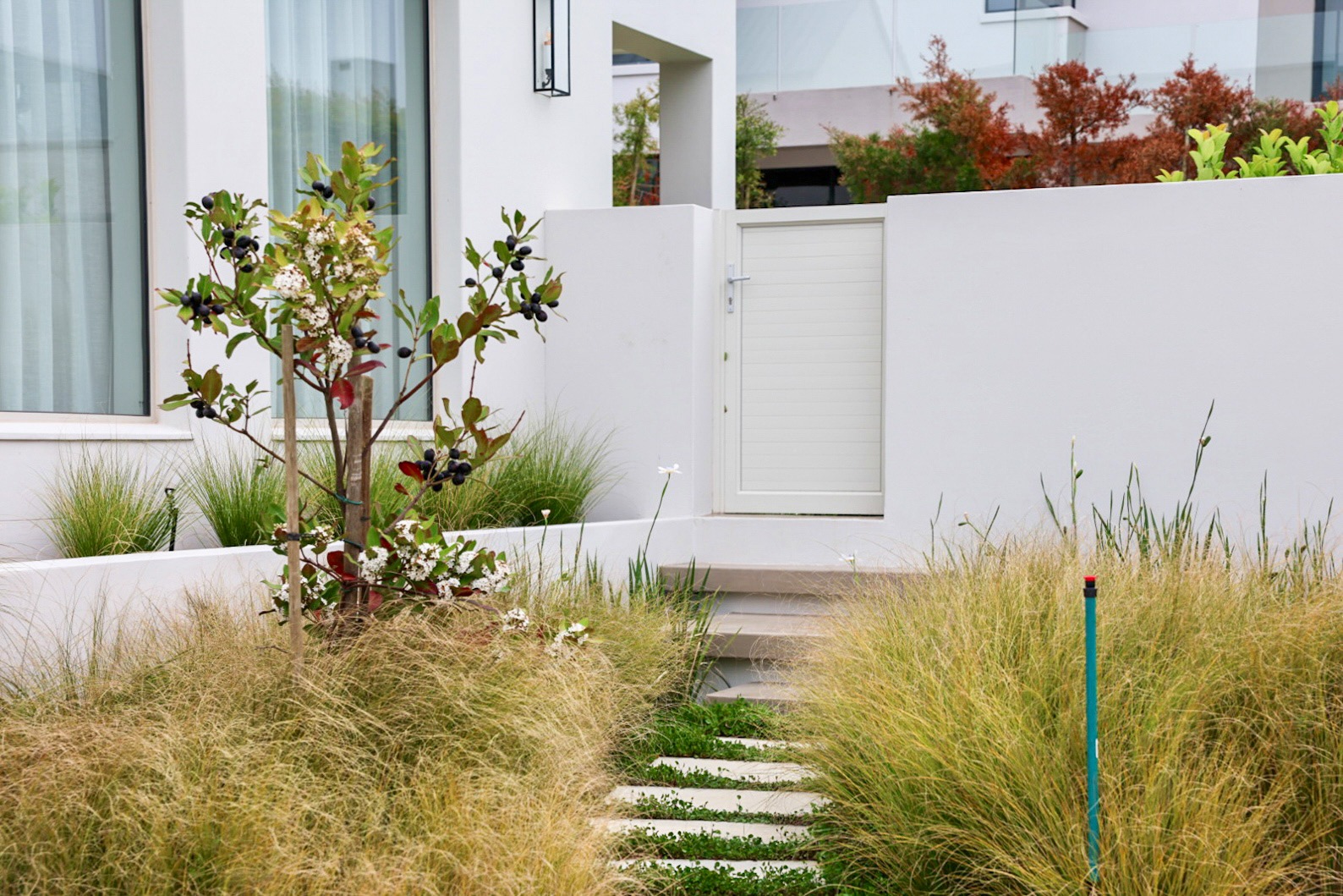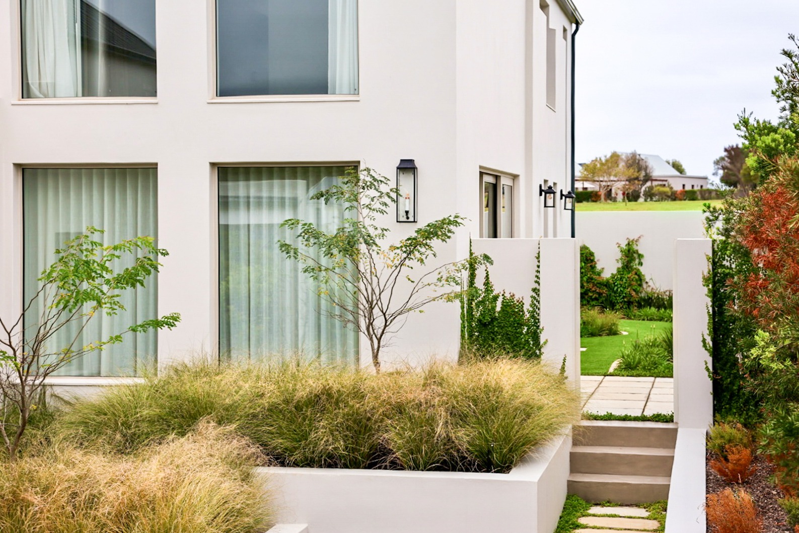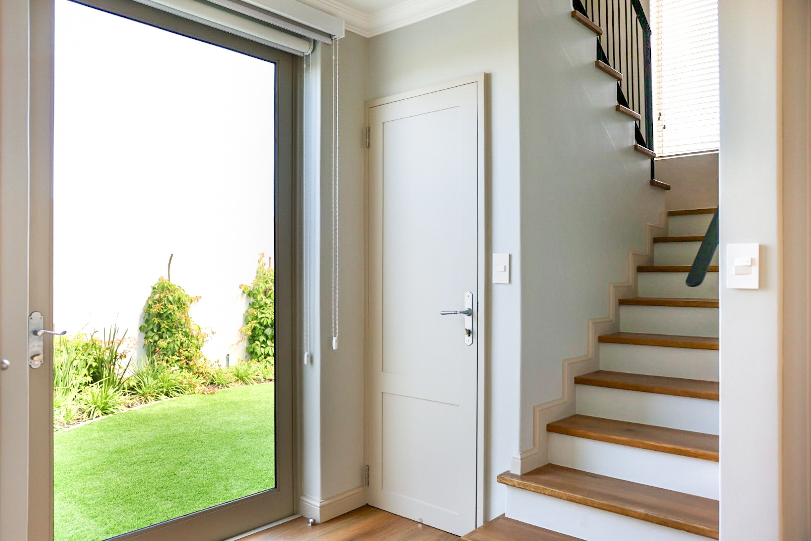 beneath the staircase and a private garden.