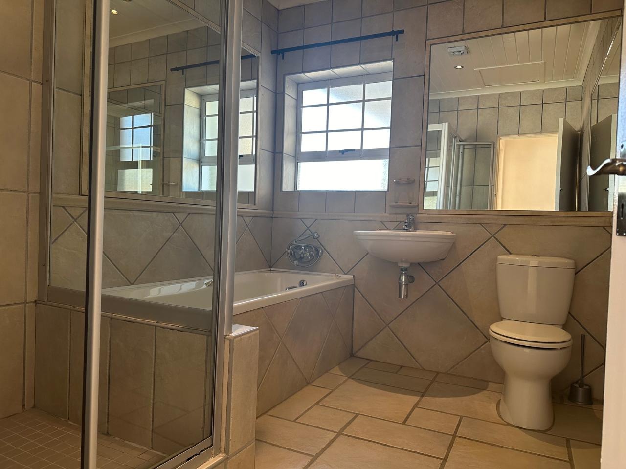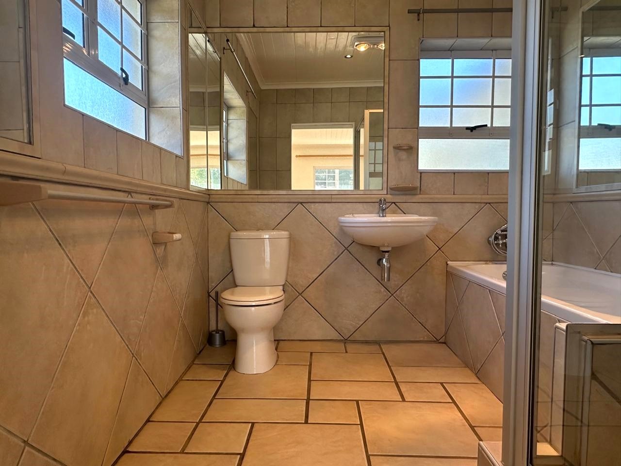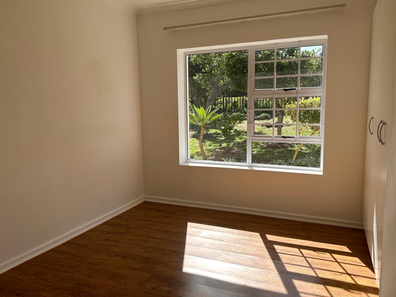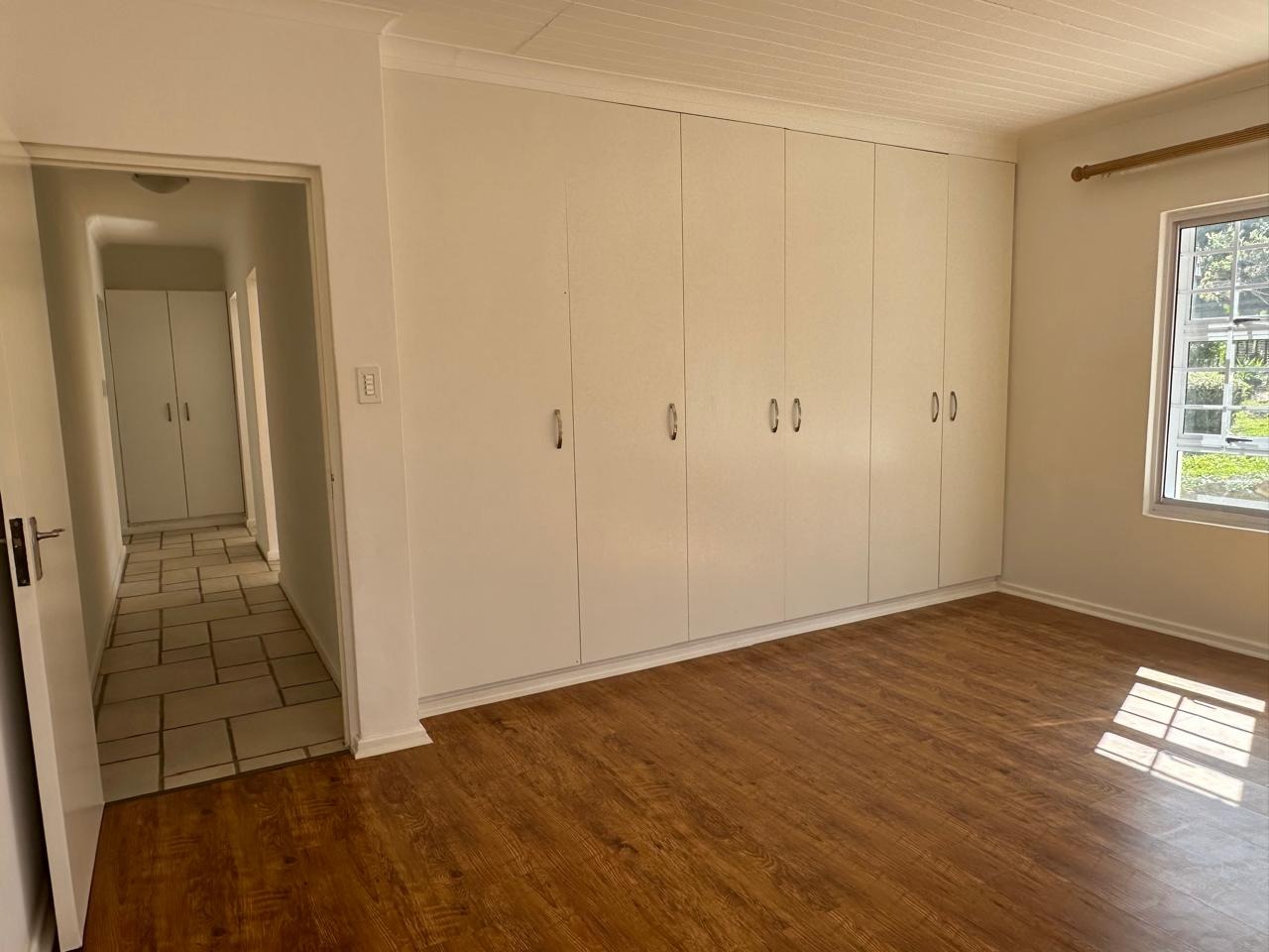 well-proportioned bedrooms include a main bedroom with abundant built-incupboards and a luxurious full en suite bathroom. Laminated floors throughout